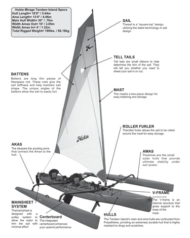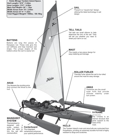 The Tandem Island suits anyone starting up sailing or kayaking with a partner or friend or seasoned sailor(s). It is perfect for weekends of kayaking or sailing or for extended camping trips for longer periods with the beauty of a trimaran offering outstanding stability and safety, even for beginners.